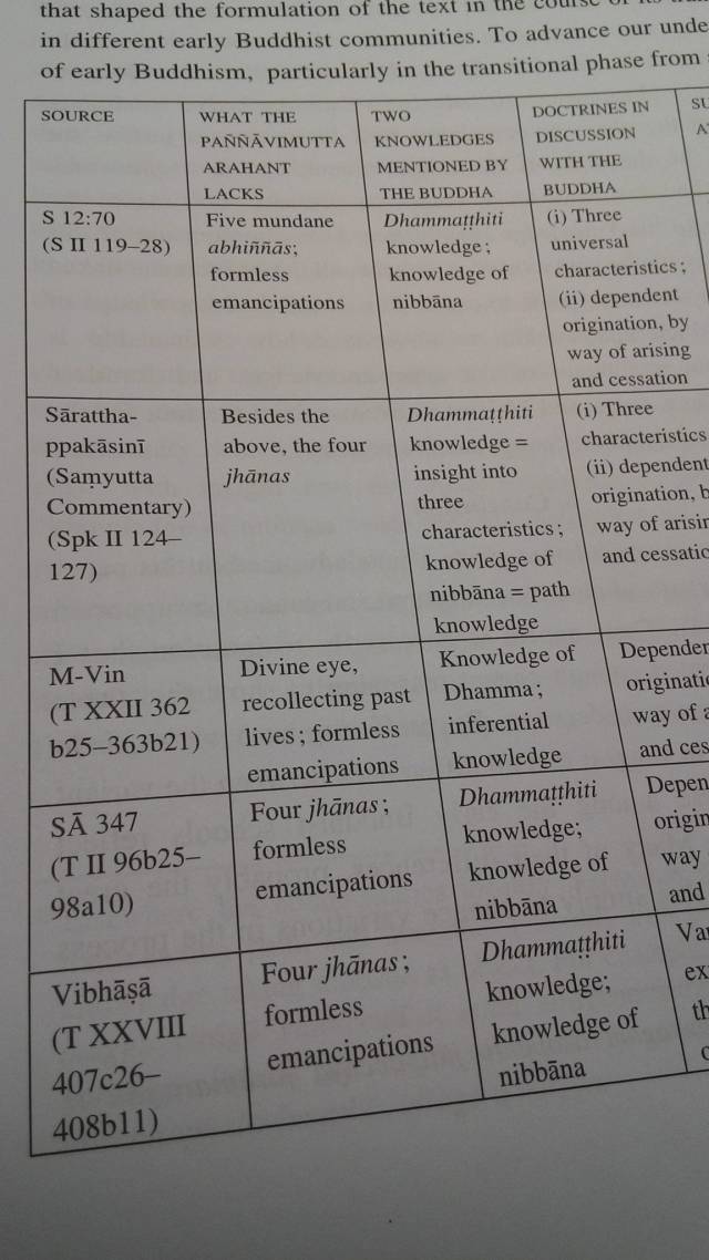 這大家都同意的 (y) Satipatthana Shi: 《雜阿含347經》的「慧解脫阿羅漢」是古今中外南北傳典籍都有討論, 菩提比丘在其論文 “Susīma’s Conversation with the Buddha: A Second Study of the Susīma-sutta”, Journal of the Pali Text Society, 30: 33–80 中有比較北傳經、律、論和南傳經典及注釋書對此經「慧解脫阿羅漢」的種種異同,他論文中有簡要的表格說明,論文版權尚未釋出,表格請參考附件。 Satipatthana Shi: 我認同「慧解脫阿羅漢沒定力」是錯誤知見,慧解脫阿羅漢定慧兼具是所有部派依經的共識,而此議題部派討論的要點在於:煩惱斷盡所需的最低定力為何? 依北傳《雜阿含347經》,慧解脫阿羅漢沒有四禪八定的根本定,有部說明慧解脫阿羅漢依初禪未至定得諸漏永盡如下: 《阿毘達磨大毘婆沙論》卷110:「世尊告曰。蘇尸摩當知。先有法住智。後有涅槃智。蘇尸摩曰。我今不知何者法住智。何者涅槃智。佛言。隨汝知與不知然法應爾。時蘇尸摩不果先願。然彼五百應真苾芻依未至定得漏盡已後。方能起根本等至。」(CBETA, T27, no. 1545, p. 572, c21-26) 依北傳《雜阿含347經》,瑜伽學者說明慧解脫阿羅漢依初靜慮近分定 (=初禪未至定)得諸漏永盡如下: 《瑜伽師地論》卷94:「得初靜慮近分所攝勝三摩地。以為依止。增上慧學增上力故。得法住智及涅槃智。用此二智以為依止。先由四種圓滿。遠離受學轉時。令心解脫一切煩惱。得阿羅漢。成慧解脫。」(CBETA, T30, no. 1579, p. 835, c20-24) ~~~~~~~~~~~~~~~~~~~~~ 依北傳《雜阿含347經》,成實論主認為慧解脫阿羅漢依欲界定得諸漏永盡如下: 《成實論》卷16〈194 三慧品〉:「又經中說。除七依處亦許得道。故知依欲界定能生真智。問曰。是人依初禪近地得阿羅漢道。非欲界定。答曰。不然。言除七依則除初禪及近地已。又此中無有因緣能依近地非欲界定。若此行者能入近地。何故不能入初禪耶。是事亦無因緣。又須尸摩經中說。先法住智後泥洹智。是義不必先得禪定。而後漏盡。但必以法住智為先。然後漏盡。故知除諸禪定。除禪定故說須尸摩經。若受近地即過同諸禪。又無有經中說近地名。是汝自憶想分別。」(CBETA, T32, no. 1646, p. 367, c26-p. 368, a8) 但是有部反對成實論主的說法,認為欲界定不穩不足以斷結,有部是將初禪未至定含攝於初禪之下故能斷結: 《阿毘曇毘婆沙論》卷41〈2 使揵度〉:「復有說者。以正觀名禪。問曰。若然者。欲界亦有正觀。應名為禪。答曰。若定能正觀亦能斷結者名禪。欲界定雖能正觀。不能斷結。故不名禪。」(CBETA, T28, no. 1546, p. 308, b27-c1) ~~~~~~~~~~~~~~~~~~~~~ 南傳對應經典SN 12:70則是說沒神通及四空定,但是南傳此經注釋書說有五種慧解脫阿羅漢,前四種得四禪,第五種是未得禪那的慧解脫阿羅漢如北傳《雜阿含347經》所說。(The Connected Discourses of the Buddha: A Translation of the Saṃyutta Nikāya, p.785) 北傳有部慧解脫阿羅漢亦有多種,慧解脫阿羅漢有得初禪未至定,亦有得四禪八定,但不得滅盡定,得滅盡定者是俱解脫阿羅漢如下: 《阿毘達磨大毘婆沙論》卷109:「若慧解脫亦能現起根本靜慮。豈不違害蘇尸摩經。彼經中說。慧解脫者不能現起根本靜慮。答慧解脫有二種。一是少分。二是全分。少分慧解脫於四靜慮能起一二三。全分慧解脫於四靜慮皆不能起。此論中說少分慧解脫。故能起他心智。蘇尸摩經說全分慧解脫。彼於四靜慮皆不能起。如是二說俱為善通。由此少分慧解脫者。乃至能起有頂等至但不得滅定。若得滅定名俱解脫。」(CBETA, T27, no. 1545, p. 564, b6-15) |