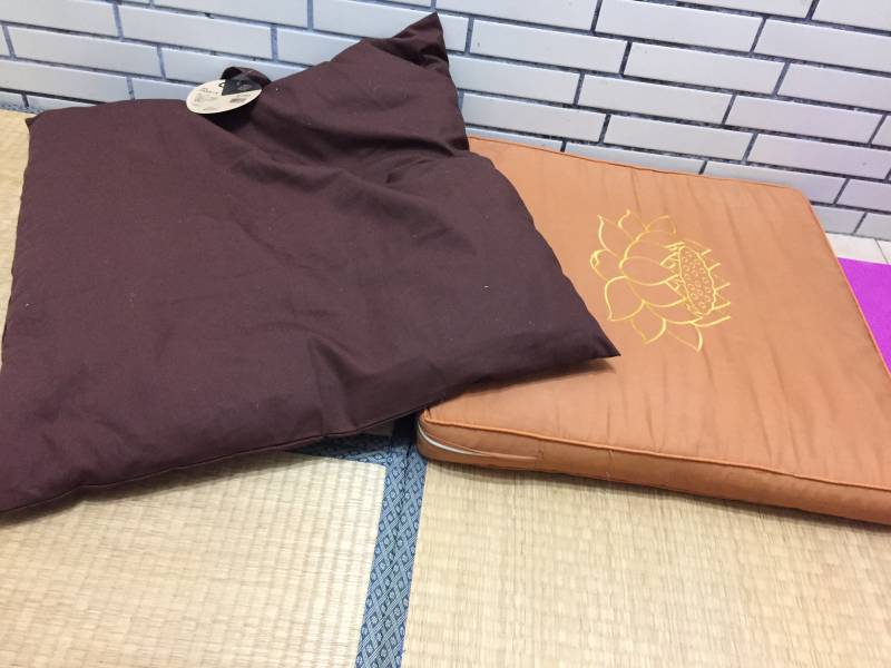 guest: 剛學打坐,蒲團及墊子好多種,要怎麼選呢? David Chiou: 初學打坐的坐姿,只要背打直、身體放鬆即可。腳掌和膝蓋要保持溫暖,所以一般會用毯子蓋住,又稱為蓋腿布,比一般毛巾大,能覆蓋並保暖即可。 初學者不一定要盤腿坐,坐椅子也行,最重要的是練習攝心,像現在很多老外學打坐是坐椅子上的,對初學者來說先練習到能攝心比較重要,這樣能早點享受打坐對心境的益處,不會花太久的時間卡在練腿上。 坐在椅子上,可將兩手心平放在膝蓋和大腿交接處。所坐的椅子,椅面要和地面平行,以四支椅腳穩穩地支持椅面。椅面的高度要使得坐著時大腿和小腿呈直角,並且腳掌平貼在地面上。為了維持清醒及呼吸順暢,坐時腰要挺起來,背部直立不要靠著椅背,並且在腰挺著的前提下放鬆身體各處的肌肉。 若已能坐超過半小時,盤腿坐較穩且能坐更久。盤腿坐時,臀部要坐上適當高度的蒲團,讓臀部高於膝蓋(髖關節高於膝關節),坐姿的其餘注意事項可見這裡。坐的區域底下則放一個墊子,用來和冰涼或潮濕的地面隔絕開來,並提供一些彈性,讓膝蓋倚在地上時較為舒服。 下封再分別介紹台灣常見的蒲團及墊子的選擇。 David Chiou: 台灣最常見的蒲團填充物有三種:木棉、椰絲、蕎麥殼。