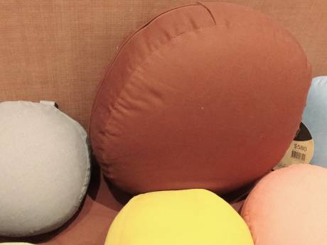 蕎麥殼填充物(越立體的殼越好,據說苦蕎麥殼略優於甜蕎麥殼。在網拍或迪化街可買到): 木棉最軟但夏天較聚熱,椰絲最硬而不變形且較不聚熱,簥麥殼最涼最鬆(能完全貼服身體曲線)但易變形,各有適合的人。 屁股沒肉的人蒲團用軟的(木棉或蕎麥殼)坐起來較舒服,也有站友坐久覺得椰絲製的不會變形、坐起來特別穩,但我個人覺得太硬。這就見仁見智,各有所好。 法鼓山的木棉蒲團據說是聖嚴法師到日本時發現日本人用木棉作填充物,很好坐,而引進的,很受歡迎。(聖嚴法師很瘦,一七○公分才四十幾公斤。因此個人猜測適合用軟的蒲團。) 蕎麥殼(buckwheat hulls)的蒲團在美國似乎最流行,但在台灣反而較少見。 美國人較會發明,因此有各種的蒲團,可參見個人在1999年發表的舊文「各種蒲團略談」,不過該文中的連結都失效了,可用 Google Images 自己用英文關鍵字找新圖即可。 如果一個蒲團太扁(尤其是公用的蒲團,常被坐到扁掉了),無法使得屁股高於膝蓋(髖關節高於膝關節),那麼就要加高,可以加個蒲團或是墊毛巾以加高。去打坐時,帶自己的蒲團能確保高度是自己習慣的,而減少適應公用的蒲團高度所浪費的時間。 經長期使用後,木棉及蕎麥殼的蒲團會越來越扁,那麼木棉蒲團就要換新的,蕎麥殼的蒲團則要重新填充蕎麥殼,纖絲蒲團則可以坐許多年也不會扁掉。 David Chiou: 打坐時舖在底下的墊子,能隔絕地面的冰冷及潮氣,略具彈性的表面也能協助略為分散膝蓋單點所受的壓力,那腿就較不易麻。 墊子依材質,有分 1. 椰絲填充,很厚,較貴 2. 棉花填充,較薄,較便宜。 大小通常有 60公分 x 60公分 以及 75公分 x 75公分 兩種規格。通常椰絲方墊是 60公分x60公分,棉花方墊是 75公分x75公分。 另外還有圓形的墊子,個人覺得不如方墊實用,因為七支座法下,兩膝會突出,用方墊較實際。